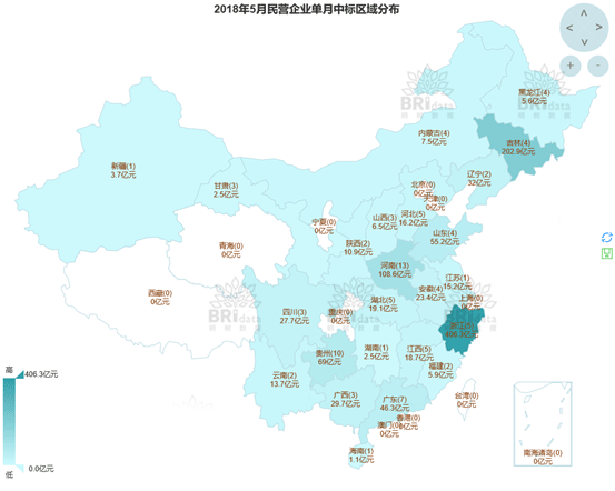 圖12:民營企業(yè)單月中標(biāo)區(qū)域分布